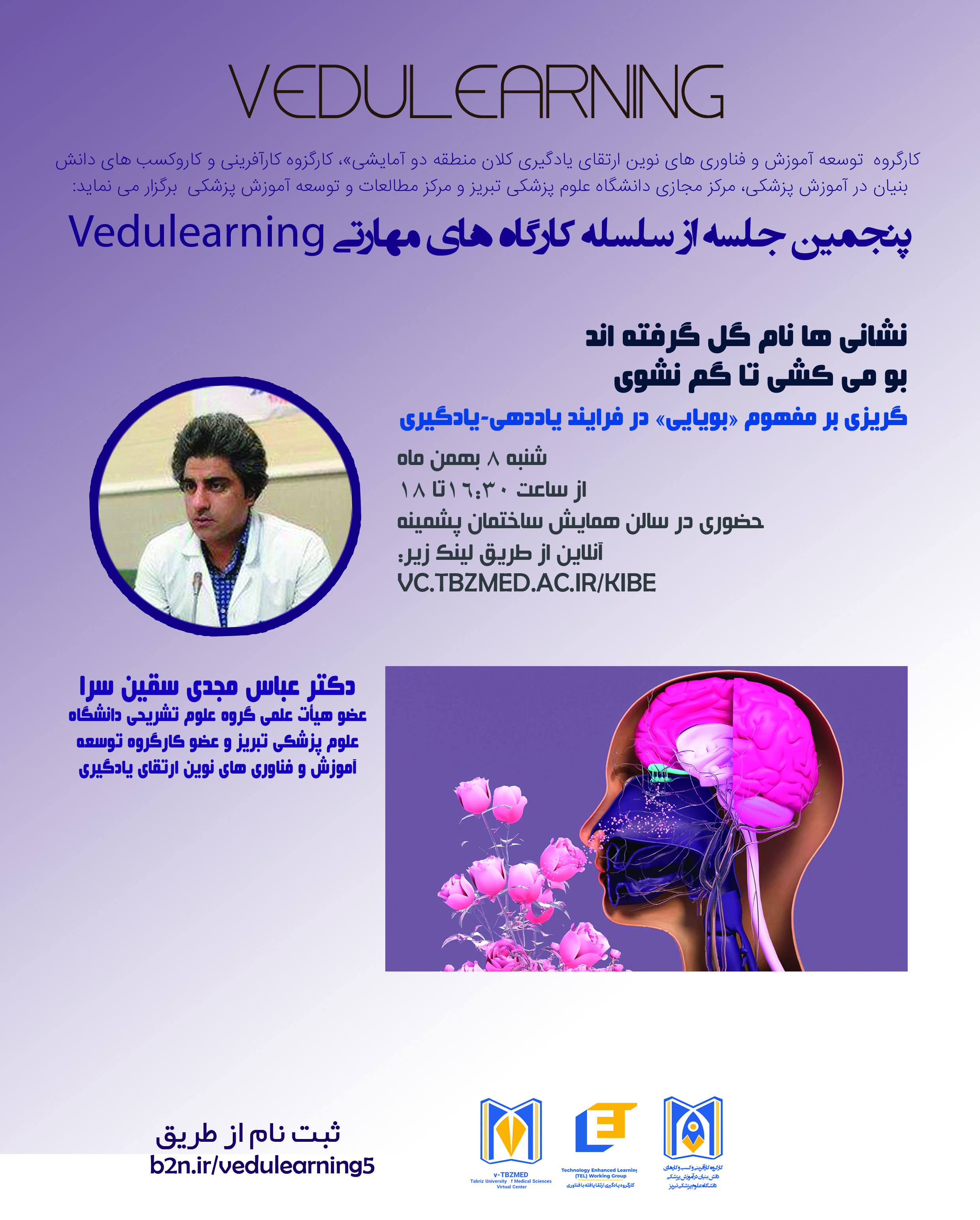 VEduLearning سلسله کارگاه های توانمندسازی اساتید و دانشجویان در رابطه با مفاهیم نوین آموزش مجازی و رَوَندها و اَبَررَوَندهای فناورانه مرتبط می باشد که توسط مرکز مجازی دانشگاه علوم پزشکی تبریز و به پیشنهاد استاد نوآور، جناب آقای دکتر عباس مجدی سقین سرا طراحی گشته است و در آن مباحث جدید سایکو-نوروبیولوژیک فرایند یاددهی-یادگیری بررسی می شود که می تواند جهت اعضای هیأت علمی و دانشجویان بسیار راهگشا باشد.