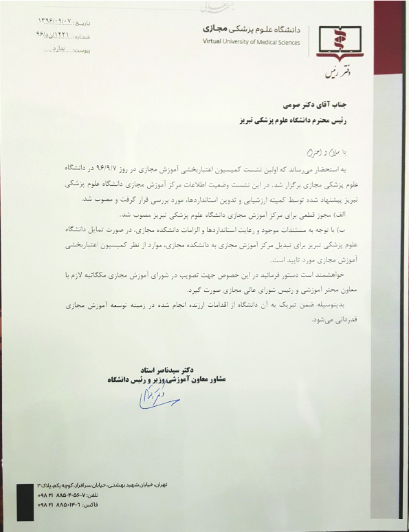 در راستای تحقق ماموریتهای بسته تحول و نوآوری در آموزش، شورای راه اندازی دانشکده مجازی در دانشگاه علوم پزشکی تبریز با اعضاء زیر تشکیل شد: